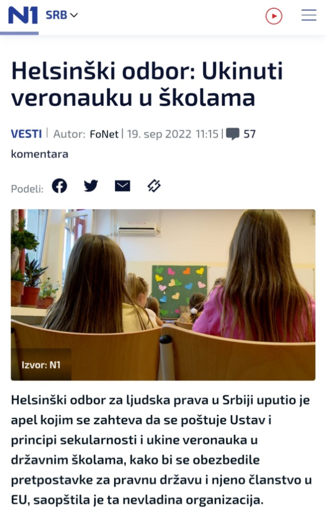 Pozdrav svima koji čitaju, ja bih lično samo pitala zašto se oko vjeronauke uopšte polemiše? Ima da je ima u školama i tačka, kao i ovdje u (Austriji)! Šta je tu sporno? Ko odlučuje o tom? Šta je s nama? Crkva nas samo spasiti može i GOSPOD🙏